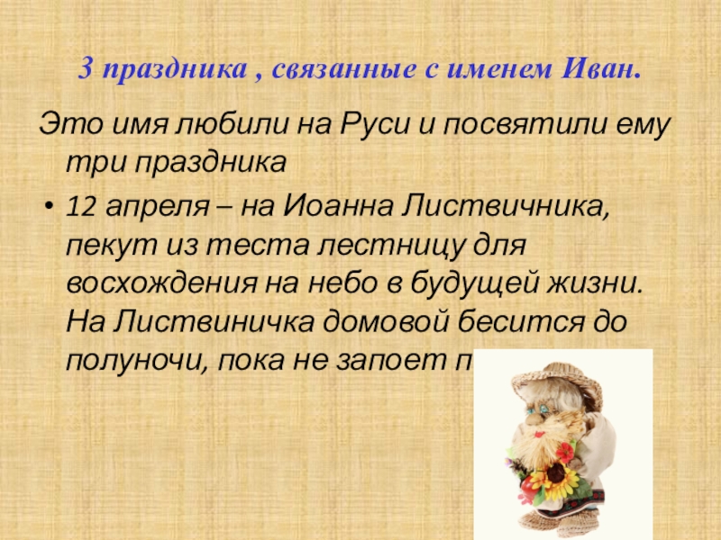 3 праздника , связанные с именем Иван.Это имя любили на Руси и посвятили ему три праздника 12