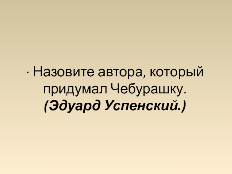 · Назовите автора, который придумал Чебурашку.  (Эдуард Успенский.)