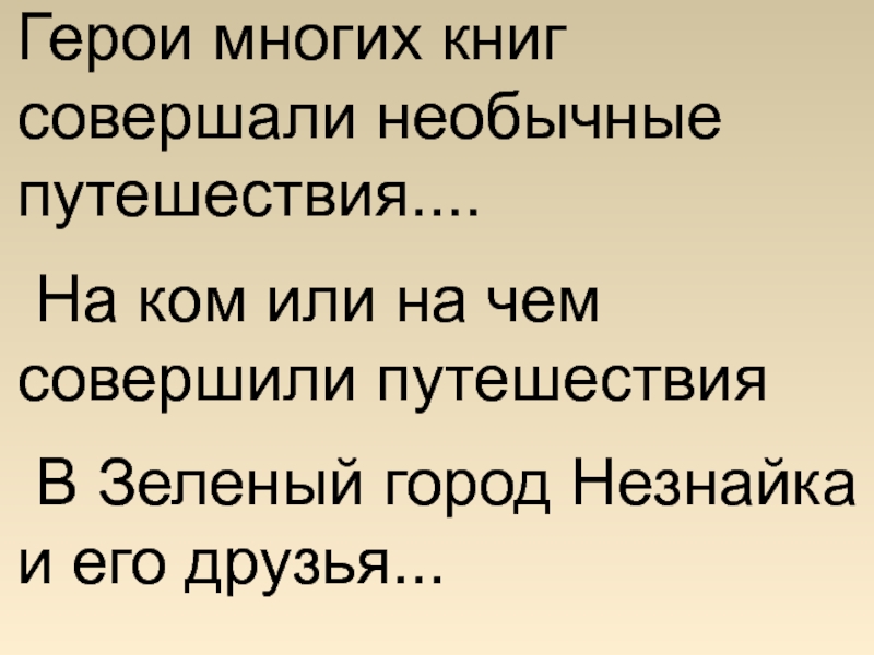 Герои многих книг совершали необычные путешествия.... На ком или на чем совершили путешествия В Зеленый город Незнайка