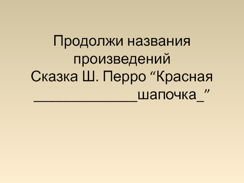 Продолжи названия произведений Сказка Ш. Перро “Красная ______________шапочка_”