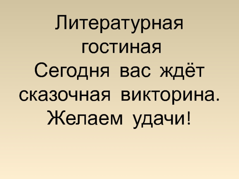 Слайд 2Литературная гостиная Сегодня вас ждёт сказочная викторина. Желаем удачи!