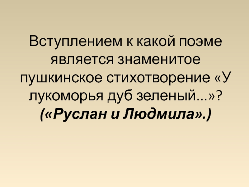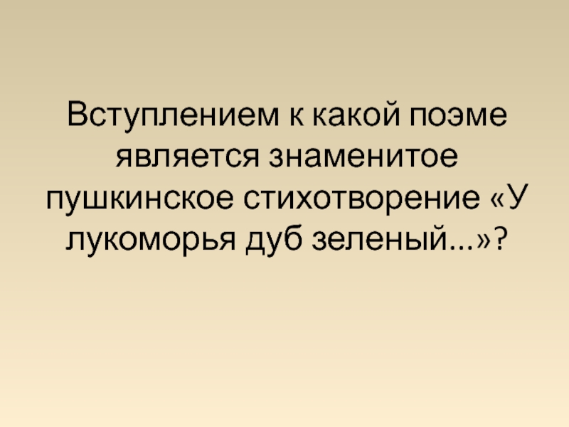 Слайд 42Вступлением к какой поэме является знаменитое пушкинское стихотворение «У лукоморья дуб