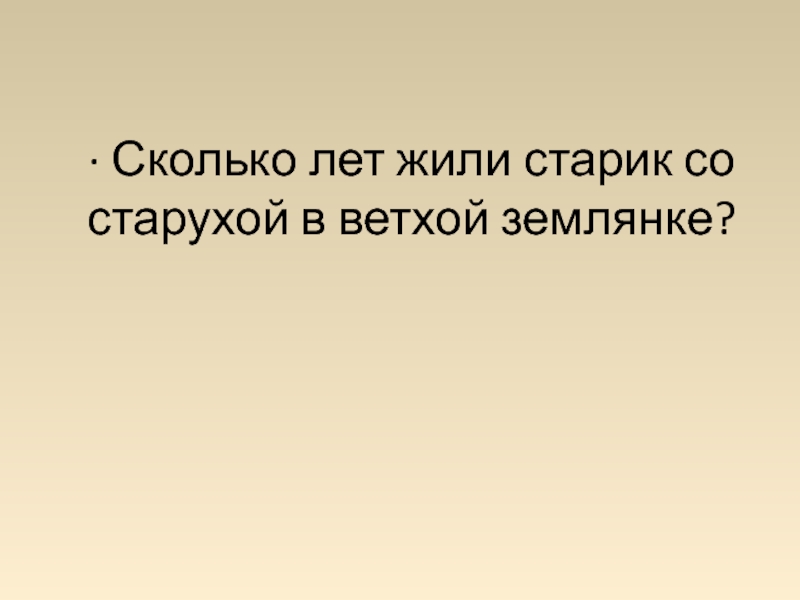 Слайд 31· Сколько лет жили старик со старухой в ветхой землянке?