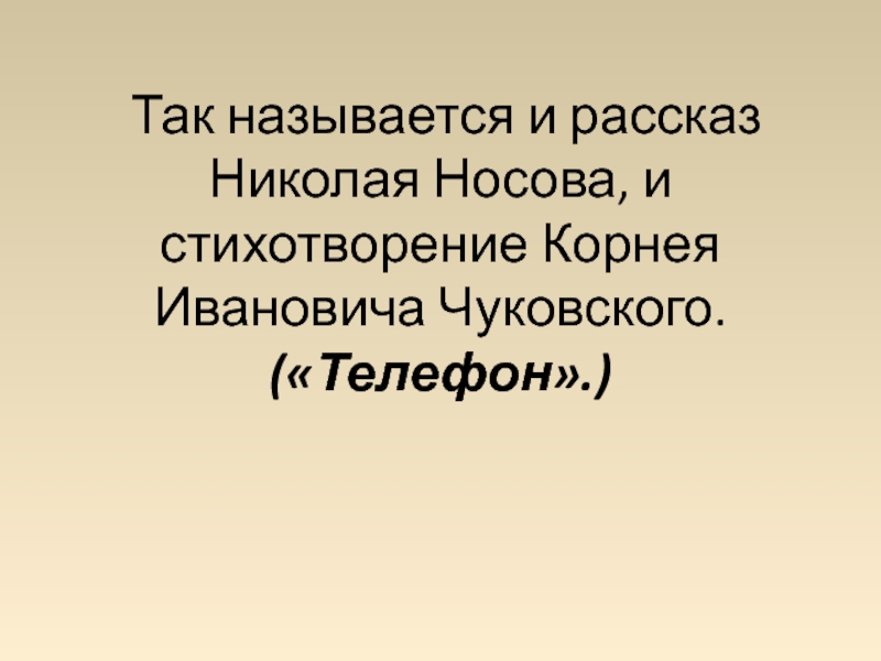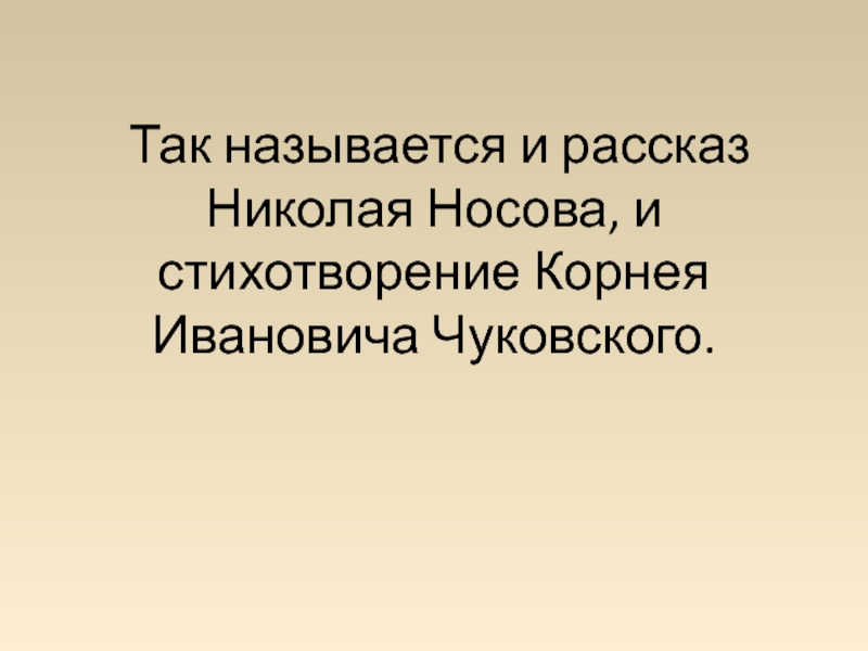 Слайд 43 Так называется и рассказ Николая Носова, и стихотворение Корнея Ивановича