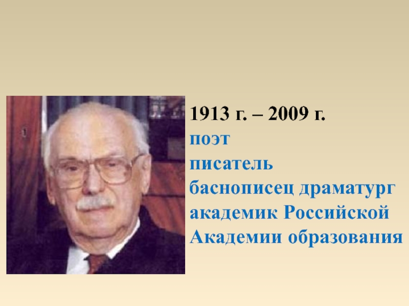 1913 г. – 2009 г.поэтписательбаснописец драматург академик Российской Академии образования