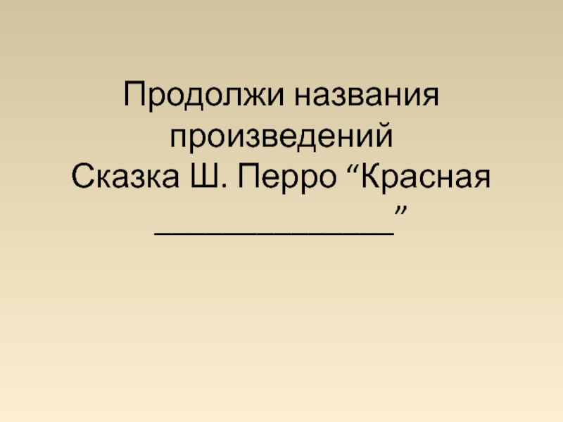 Слайд 59 Продолжи названия произведений Сказка Ш. Перро “Красная ______________”