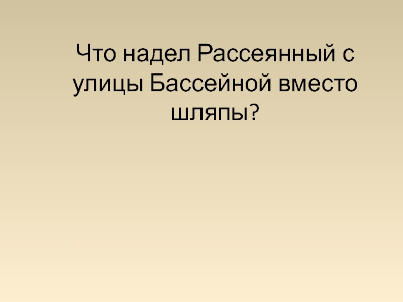 Слайд 39Что надел Рассеянный с улицы Бассейной вместо шляпы?