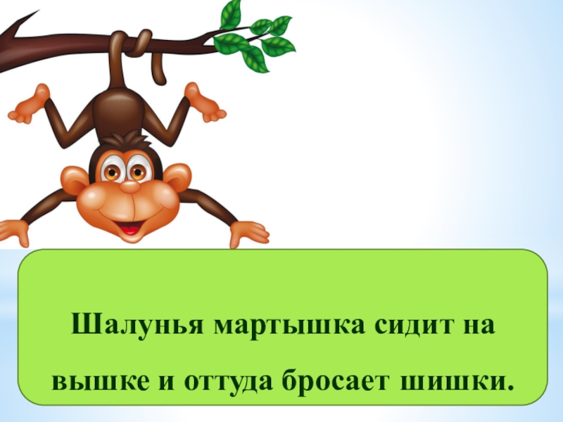 Слайд 3Шалунья мартышка сидит на вышке и оттуда бросает шишки.