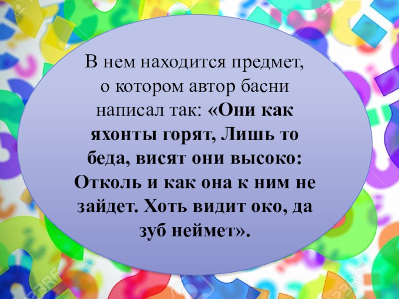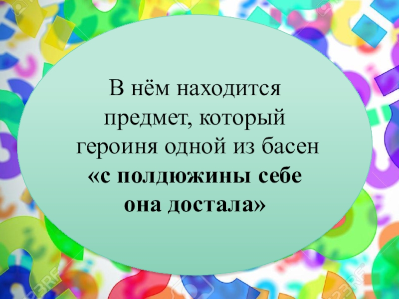 Слайд 11В нём находится предмет, который героиня одной из басен «с полдюжины