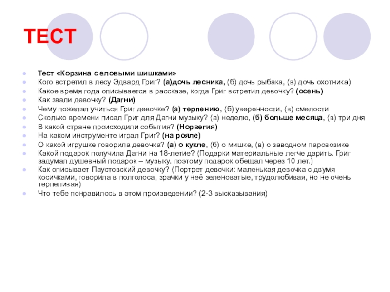 Какой подарок получила Дагни на 18-летие? (Подарки материальные легче дарить. Григ задумал душевный подарок – музыку, поэтому подарок обещал через 10 лет.)