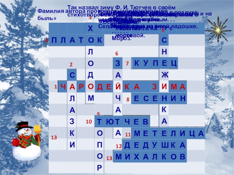Зимним . . . . . . . . пахнуло на поля и на леса.