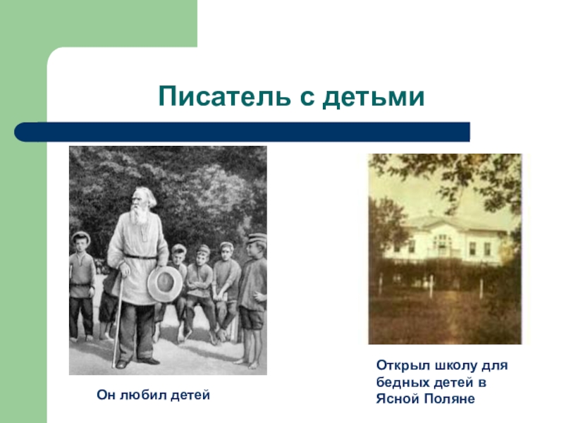 Писатель с детьмиОн любил детейОткрыл школу для бедных детей в Ясной Поляне