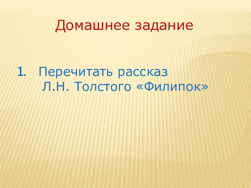 Домашнее задание Перечитать рассказ   Л.Н. Толстого «Филипок»