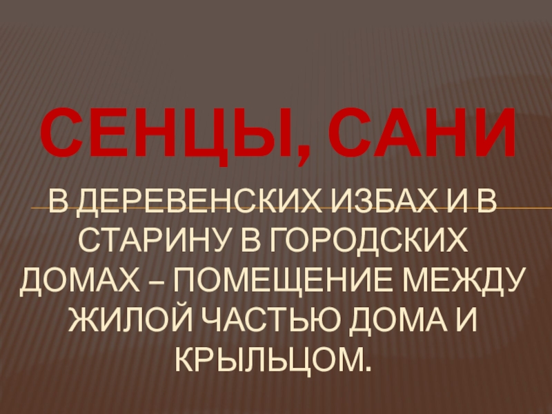 СЕНЦЫ, САНИВ деревенских избах и в старину в городских домах – помещение между жилой частью дома и