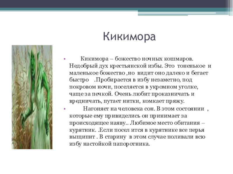 Кикимора – божество ночных кошмаров. Недобрый дух