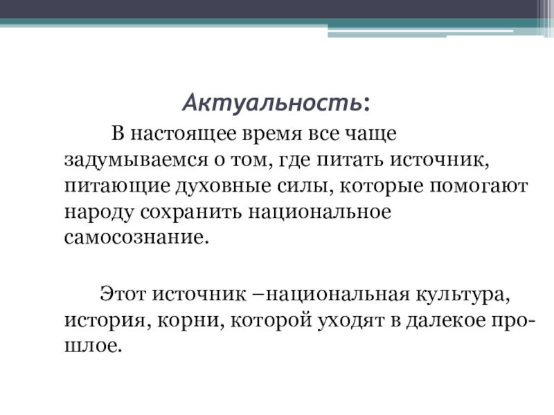 Этот источник –национальная культура, история, корни, которой уходят в далекое про- шлое.