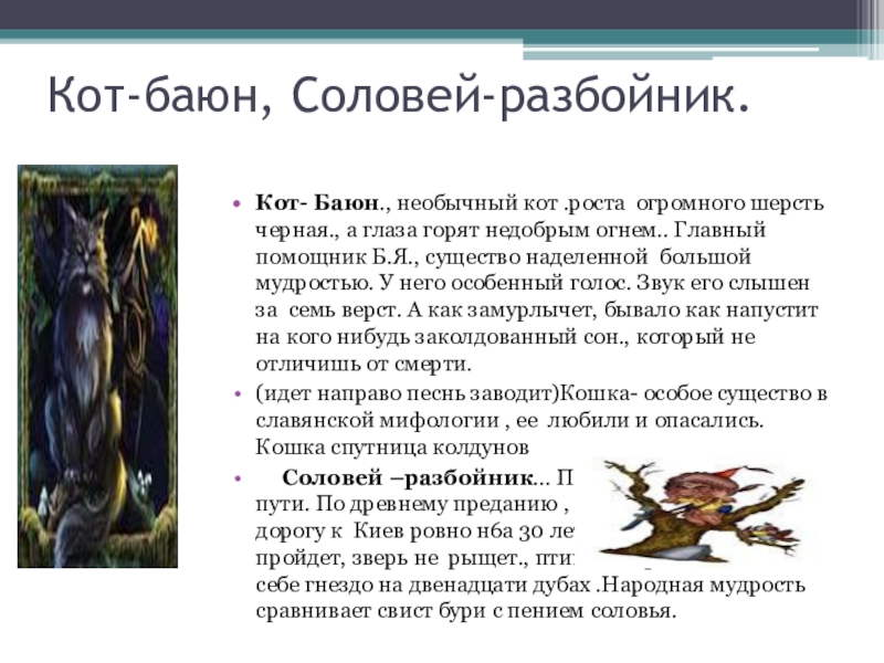 Слайд 14Кот-баюн, Соловей-разбойник.