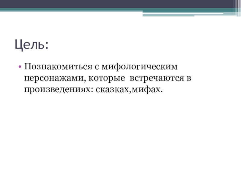 Познакомиться с мифологическим персонажами, которые встречаются в произведениях: сказках,мифах.