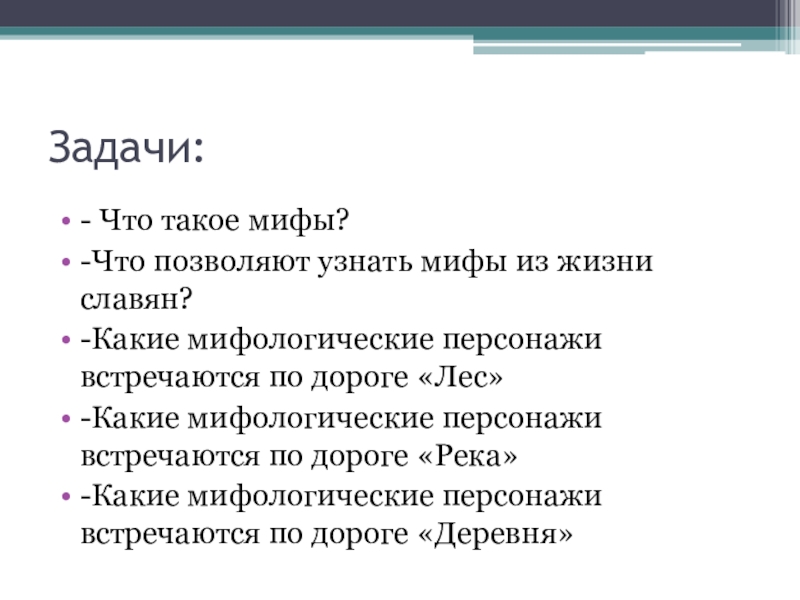 - Познакомить с мифологическими персонажами, которые встречаются по дороге « Деревня.»
