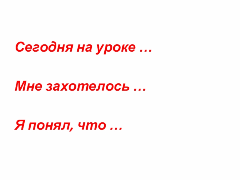 Сегодня на уроке …Мне захотелось …Я понял, что …