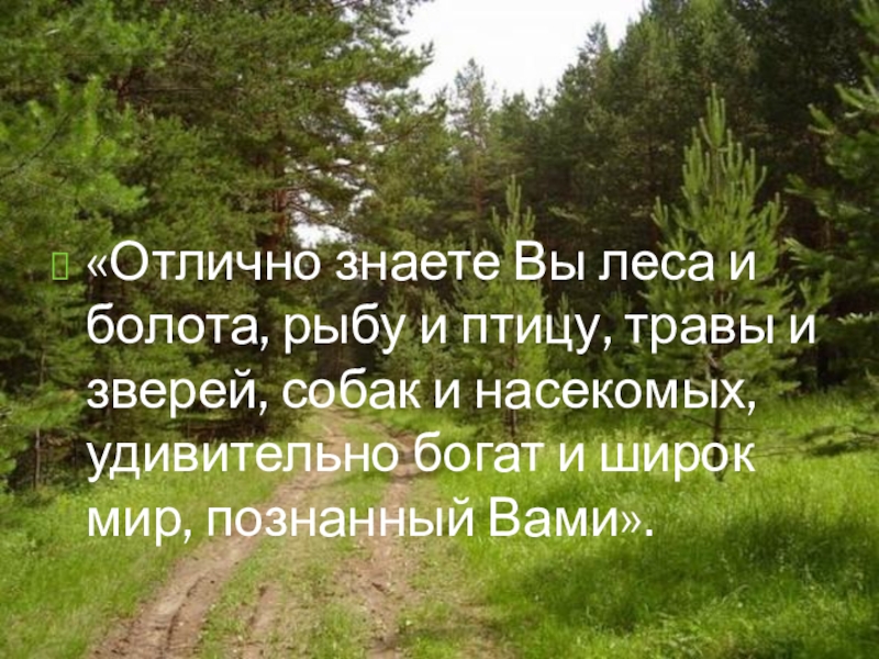 Слайд 5«Отлично знаете Вы леса и болота, рыбу и птицу, травы и