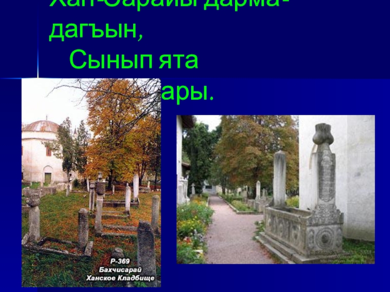 Слайд 14Хан-Сарайы дарма-дагъын, Сынып ята башташлары.