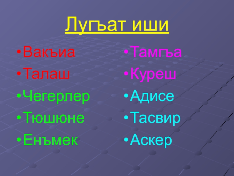 Слайд 22Лугъат иши