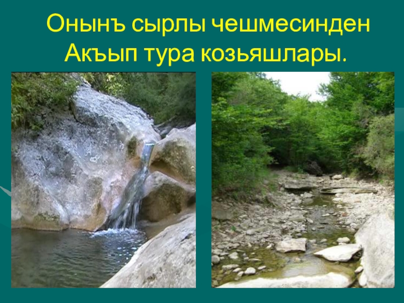 Слайд 13 Онынъ сырлы чешмесинден Акъып тура козьяшлары.