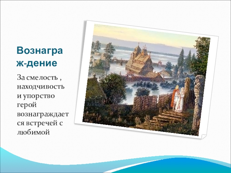 Вознаграж-дениеЗа смелость , находчивость и упорство герой вознаграждается встречей с любимой
