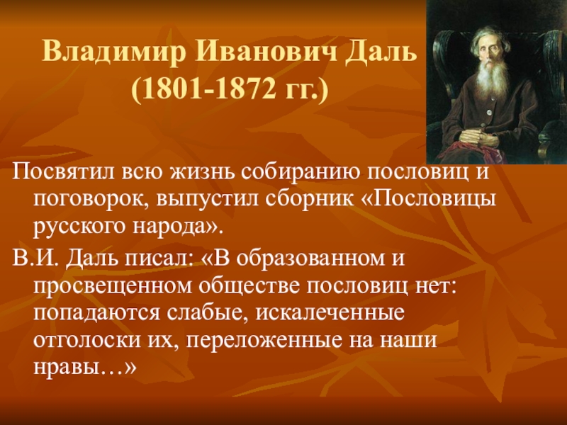 Посвятил всю жизнь собиранию пословиц и поговорок, выпустил