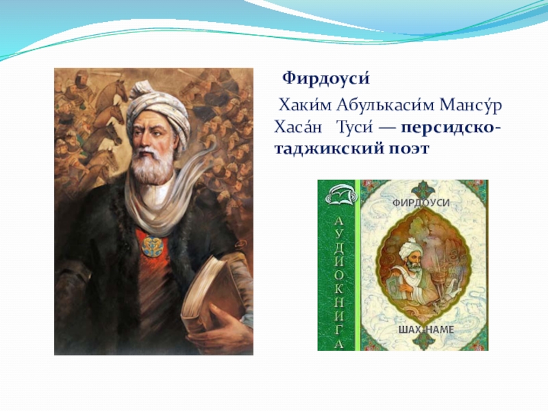 Фирдоуси́  Хаки́м Абулькаси́м Мансу́р Хаса́н   Туси́ — персидско-таджикский поэт