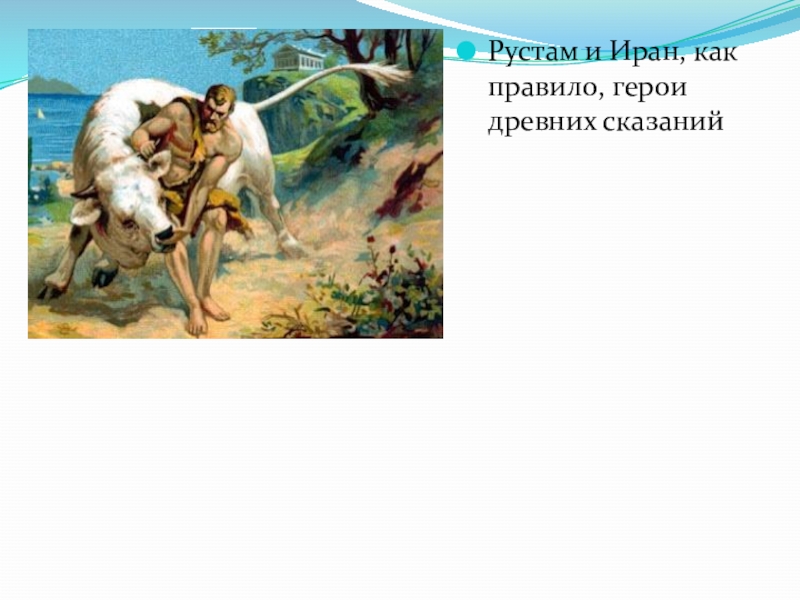 Слайд 5Рустам и Иран, как правило, герои древних сказаний
