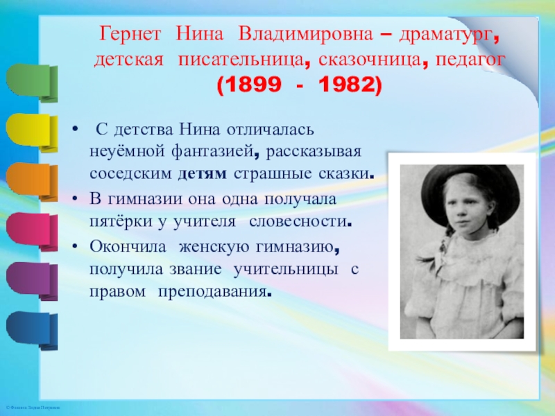 С детства Нина отличалась неуёмной фантазией, рассказывая соседским детям страшные сказки.