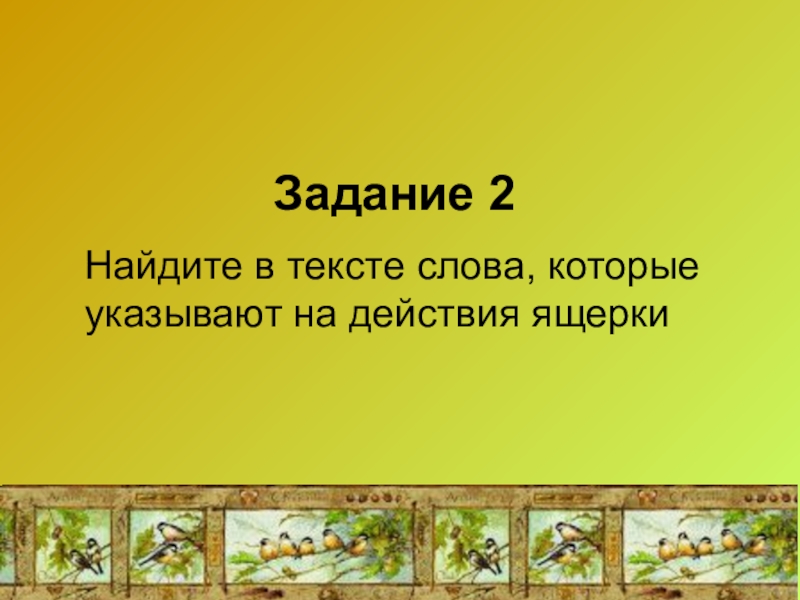 Задание 2  Найдите в тексте слова, которые указывают на действия ящерки