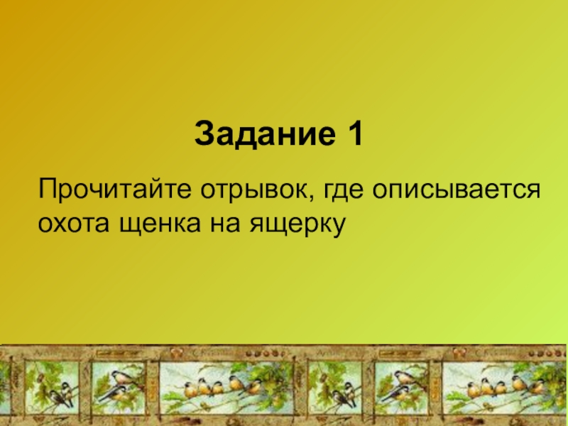 Задание 1  Прочитайте отрывок, где описывается охота щенка на ящерку