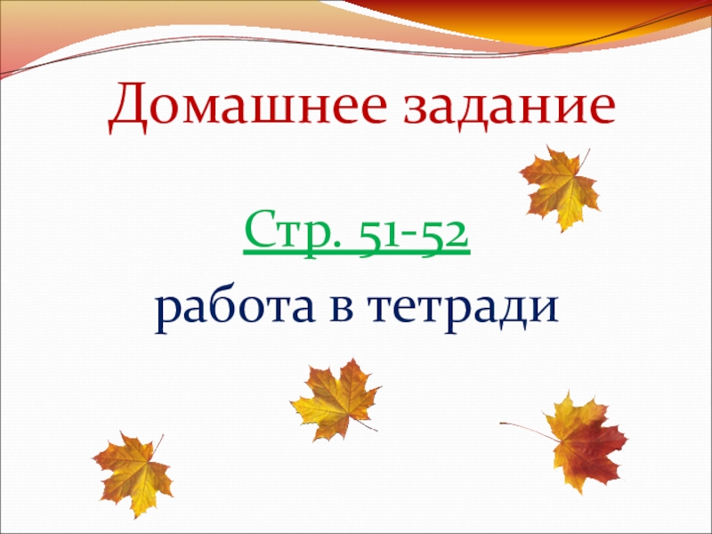 Домашнее заданиеСтр. 51-52 работа в тетради