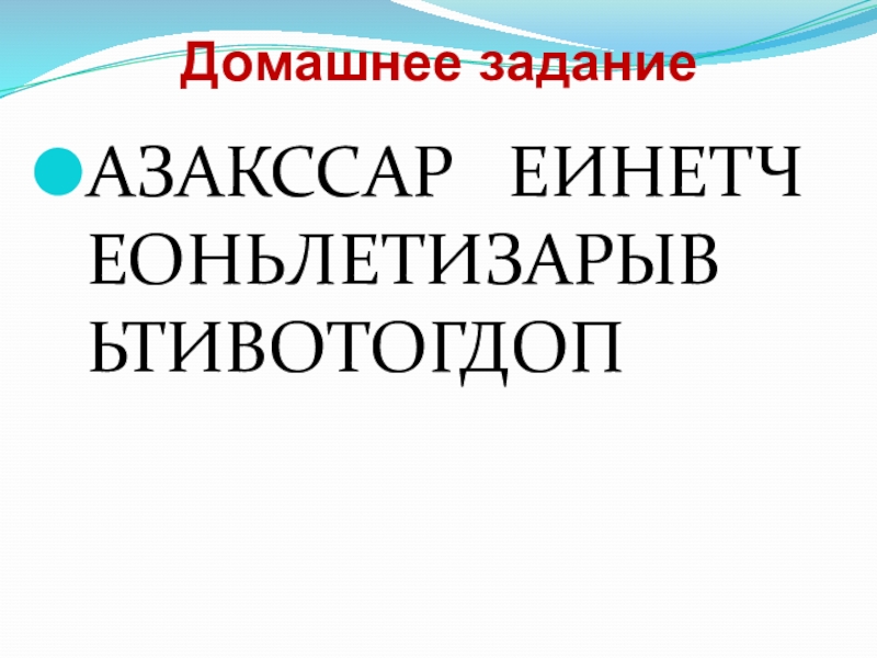 Домашнее заданиеАЗАКССАР  ЕИНЕТЧ  ЕОНЬЛЕТИЗАРЫВ  ЬТИВОТОГДОП