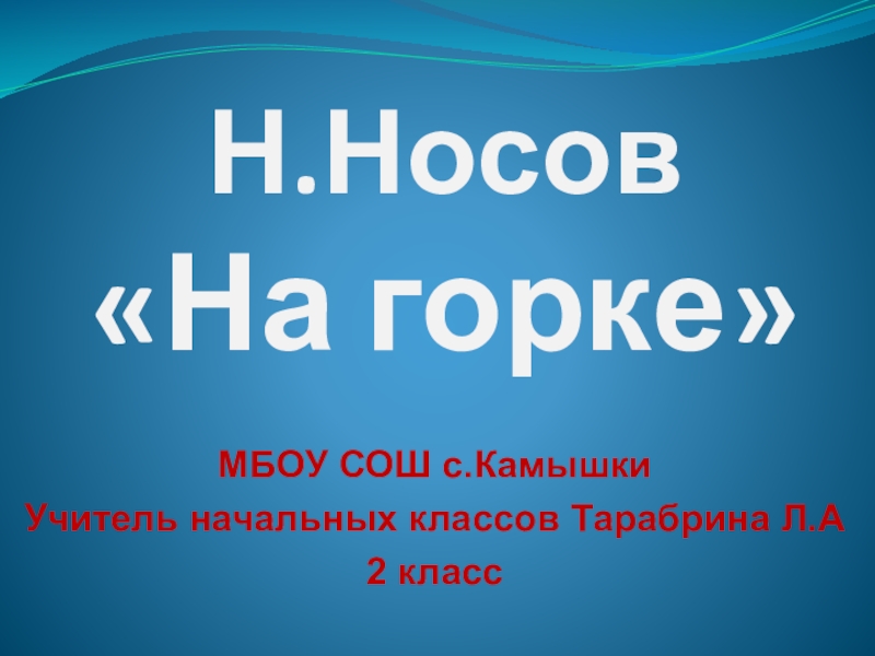 Н.Носов «На горке»МБОУ СОШ с.КамышкиУчитель начальных классов Тарабрина Л.А2 класс