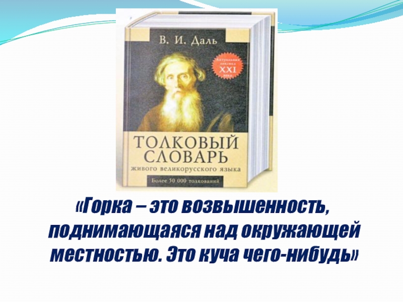 Слайд 7 «Горка – это возвышенность, поднимающаяся над окружающей местностью. Это куча