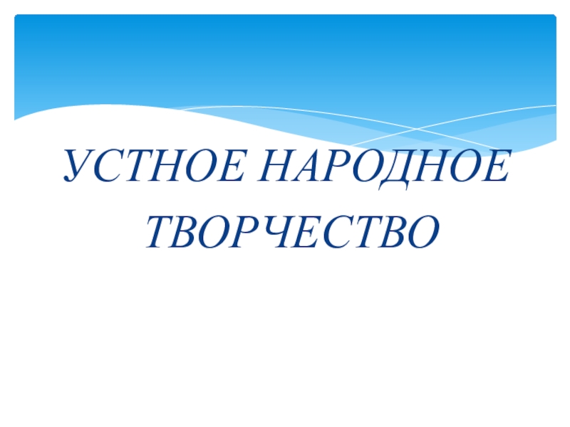УСТНОЕ НАРОДНОЕ ТВОРЧЕСТВО