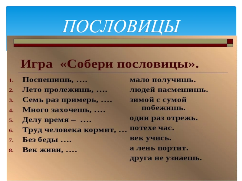 Слайд 5ПОСЛОВИЦЫ