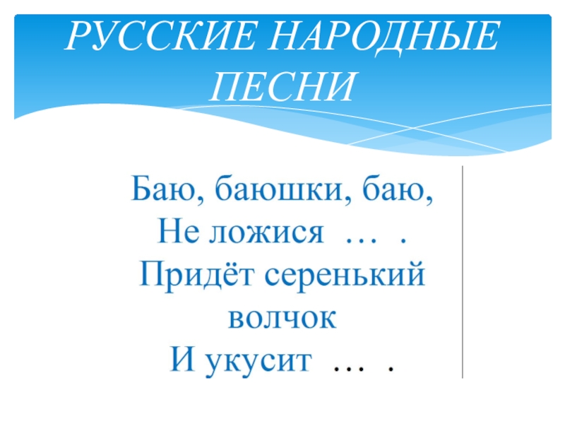 Слайд 6РУССКИЕ НАРОДНЫЕ ПЕСНИ