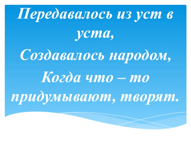 Передавалось из уст в уста,Создавалось народом,Когда что – то придумывают, творят.