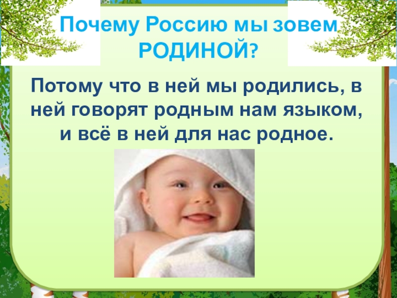 Слайд 9Почему Россию мы зовем РОДИНОЙ?