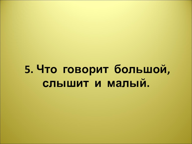 Слайд 14 5. Что говорит большой, слышит и малый.