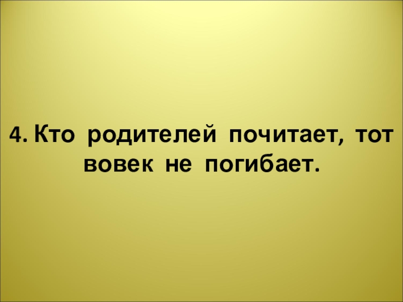 Слайд 134. Кто родителей почитает, тот вовек не погибает.