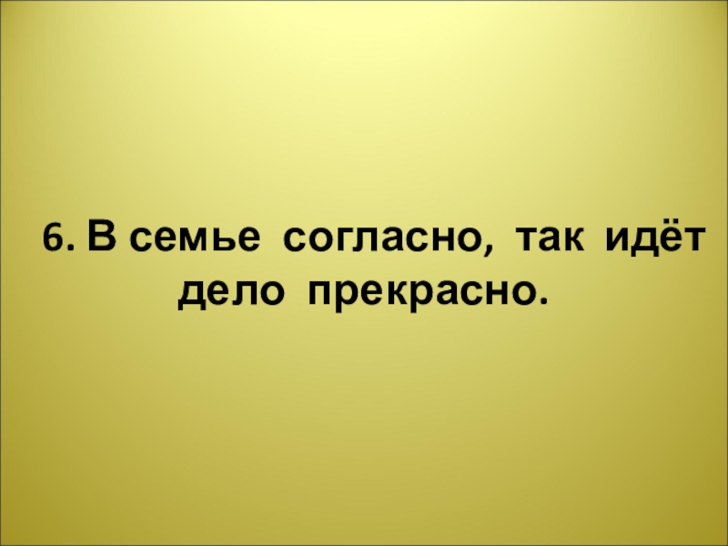 Слайд 15 6. В семье согласно, так идёт дело прекрасно.