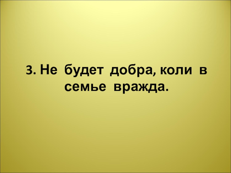 так и душа на месте. 3.Не будет добра, коли в семье вражда. 4.Кто родителей почитает, тот вовек не погибает. 5.Что говорит большой, слышит и малый. 6.В семье согласно, так идёт дело прекрасно.