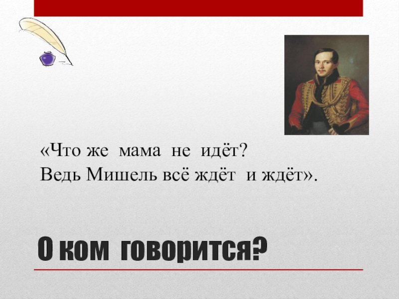 О ком говорится?«Что же мама не идёт?Ведь Мишель всё ждёт и ждёт».