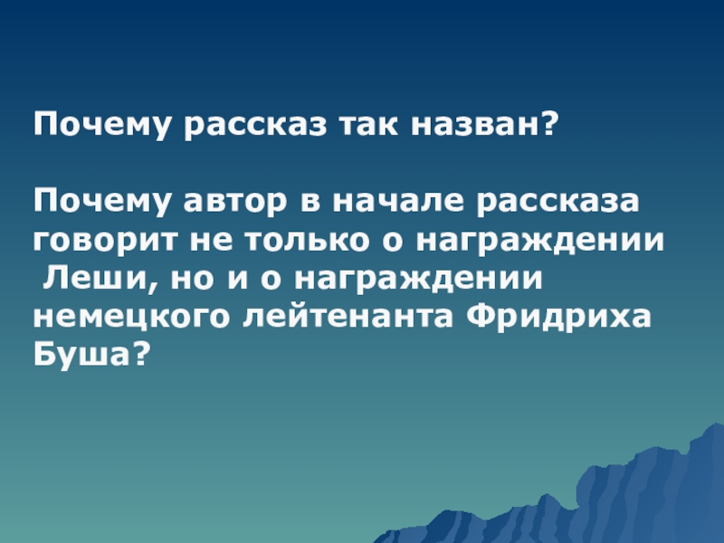 Почему рассказ так назван?Почему автор в начале рассказа говорит не только о награждении Леши, но и о